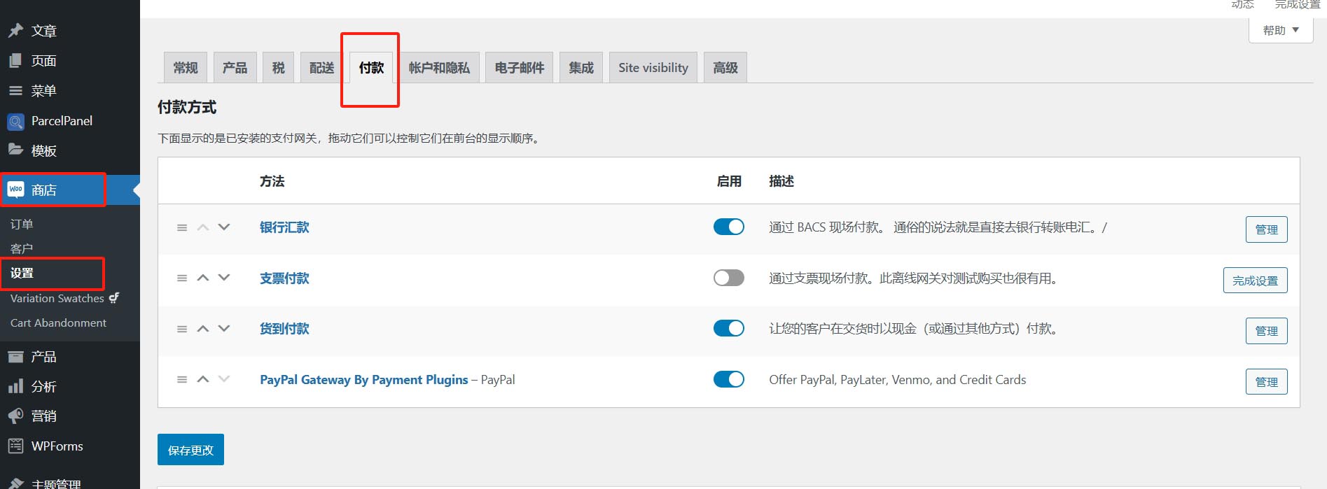 支付设置--货到付款