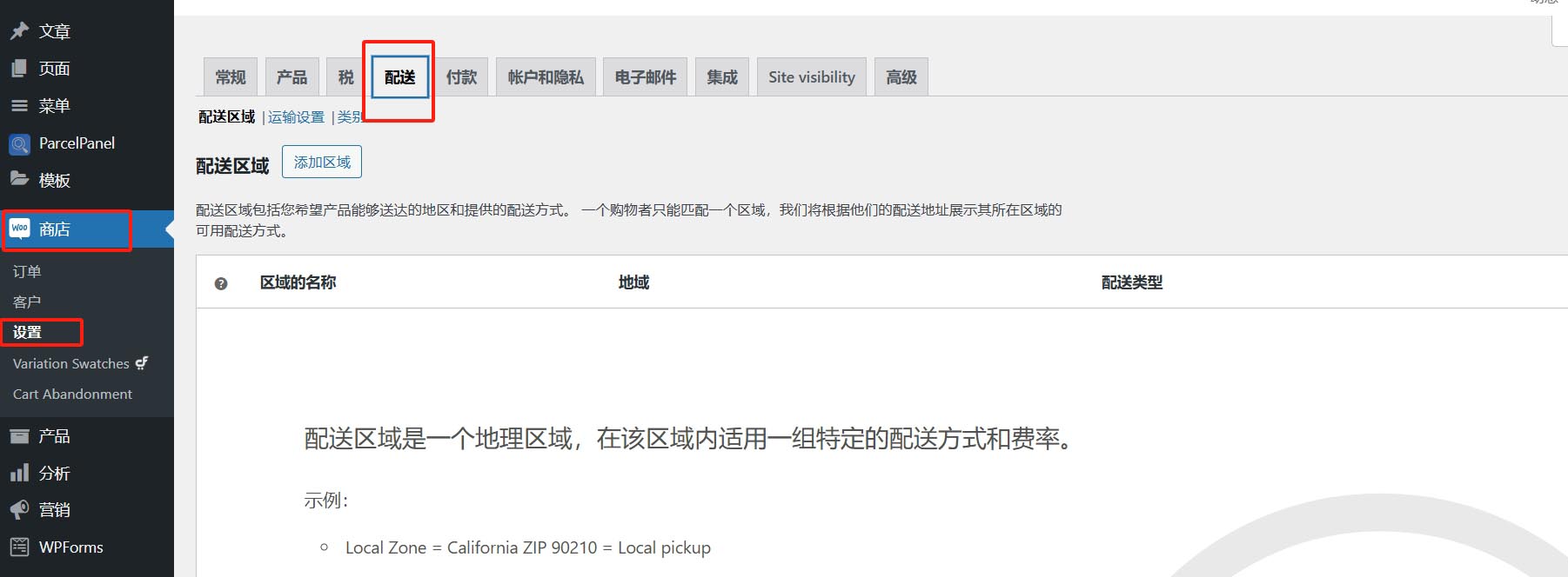 店铺设置--配送方式